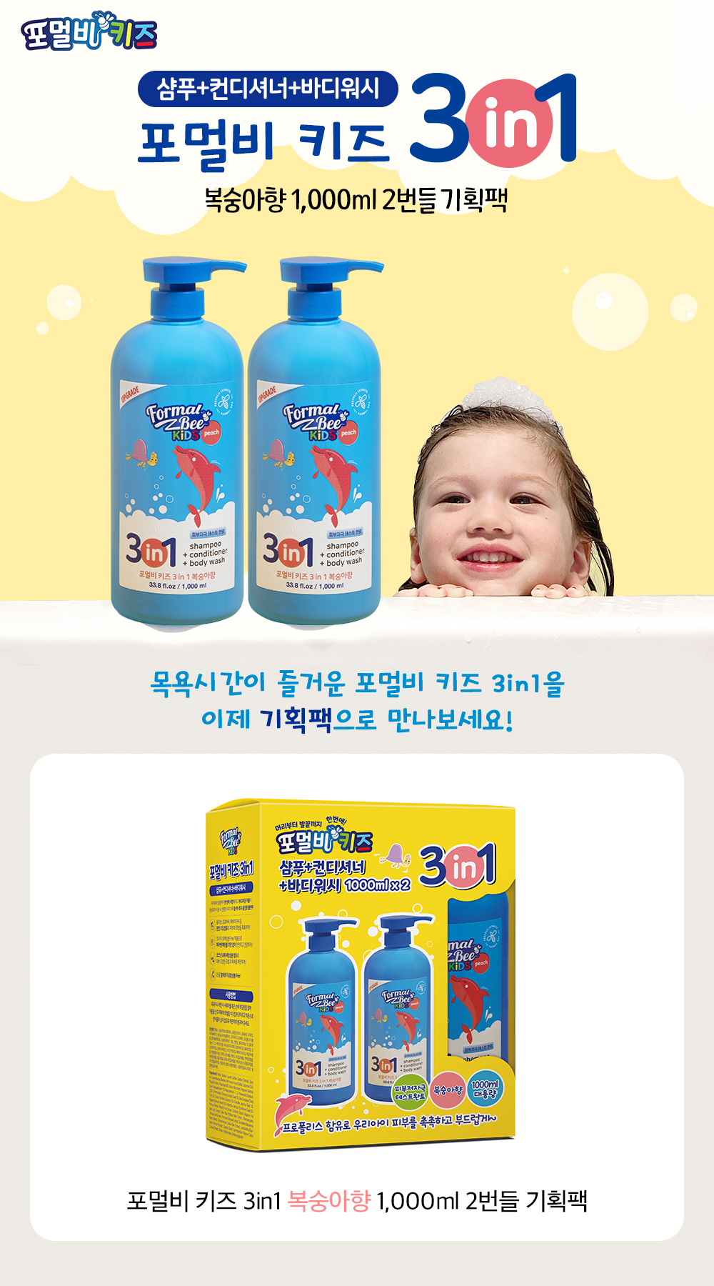 포멀비 키즈 3in1 복숭아향 1000ml 2번들 기획팩